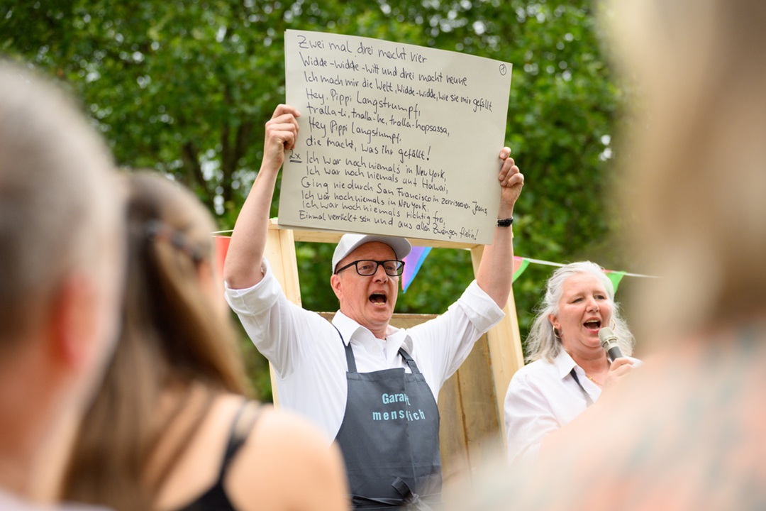 Musikalisch wird das Format live begleitet und gipfelt regelmäßig im Rudelsingen. Fremde Menschen stimmen gemeinsam in bekannte Lieder ein – ohne Noten, ohne Leistungsdruck, dafür mit umso mehr Herz und Begeisterung. Mitsingen ist ausdrücklich erwünscht! So entsteht ein gemeinsamer Klang, der verbindet, mitreißt und Menschen auf besondere Weise zusammenführt.